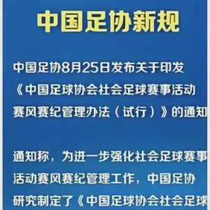 最近中国足协发布社会足球赛事管理新规,所谓的社会足球,其实就是非职业足球赛事,这也意味着未来所有社会足球赛事的管理有规可...