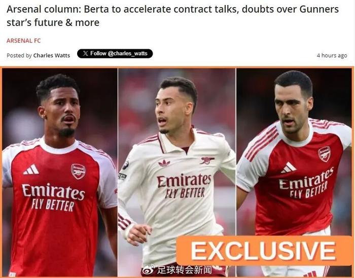 关于萨卡和萨利巴的续约,CWS表示转会窗关闭后,阿森纳目前的优先目标就是续约两名球星。自贝尔塔上任以来,他已经帮助阿森纳续约了加布里埃尔、恩瓦内里和斯凯利,不过萨卡和萨利巴目前的合同都还剩2年到期,真正的考验才刚开始。