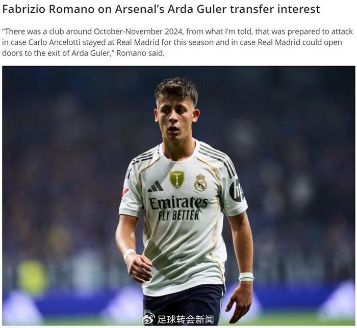 罗马诺说:“在2024年10-11月期间,据我所知,假如安切洛蒂留在皇马,并且假如皇马愿意出售居勒尔的话,有一支俱乐部曾准备发起求购。
